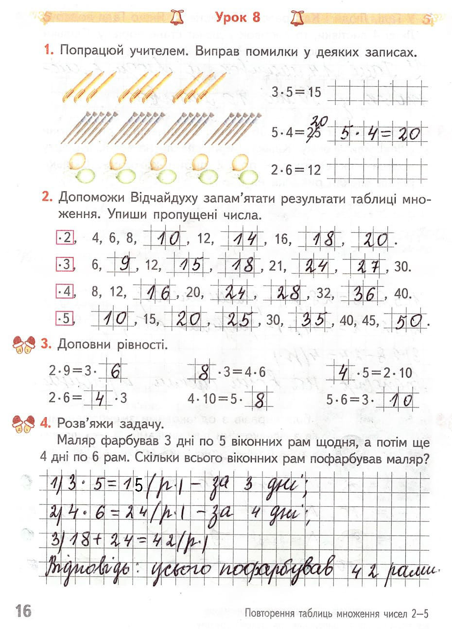 Сторінка 16 частина 1 гдз робочий зошит математика 3 клас Гісь Філяк 2020