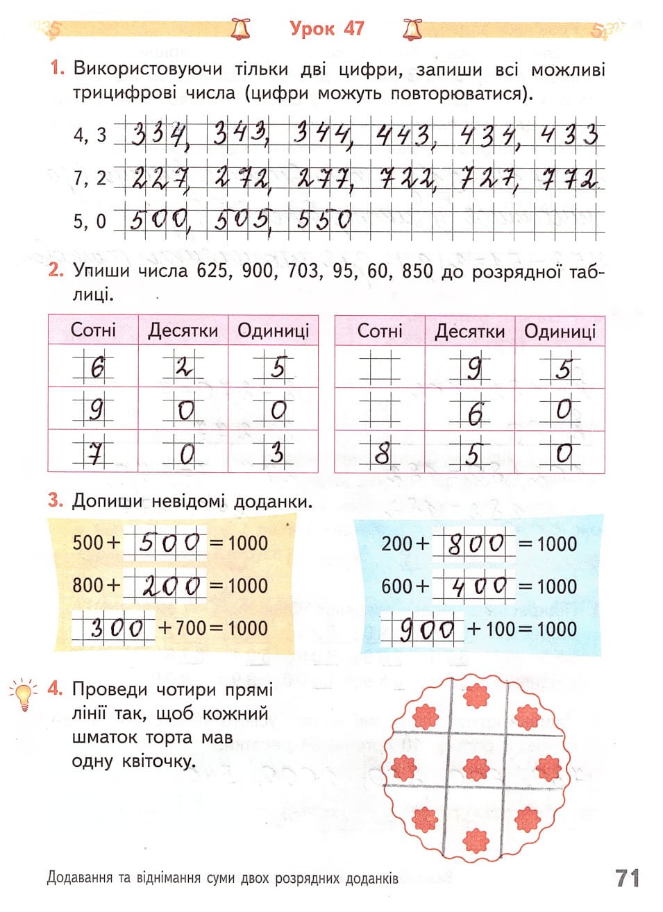 Сторінка 71 частина 1 гдз робочий зошит математика 3 клас Гісь Філяк 2020