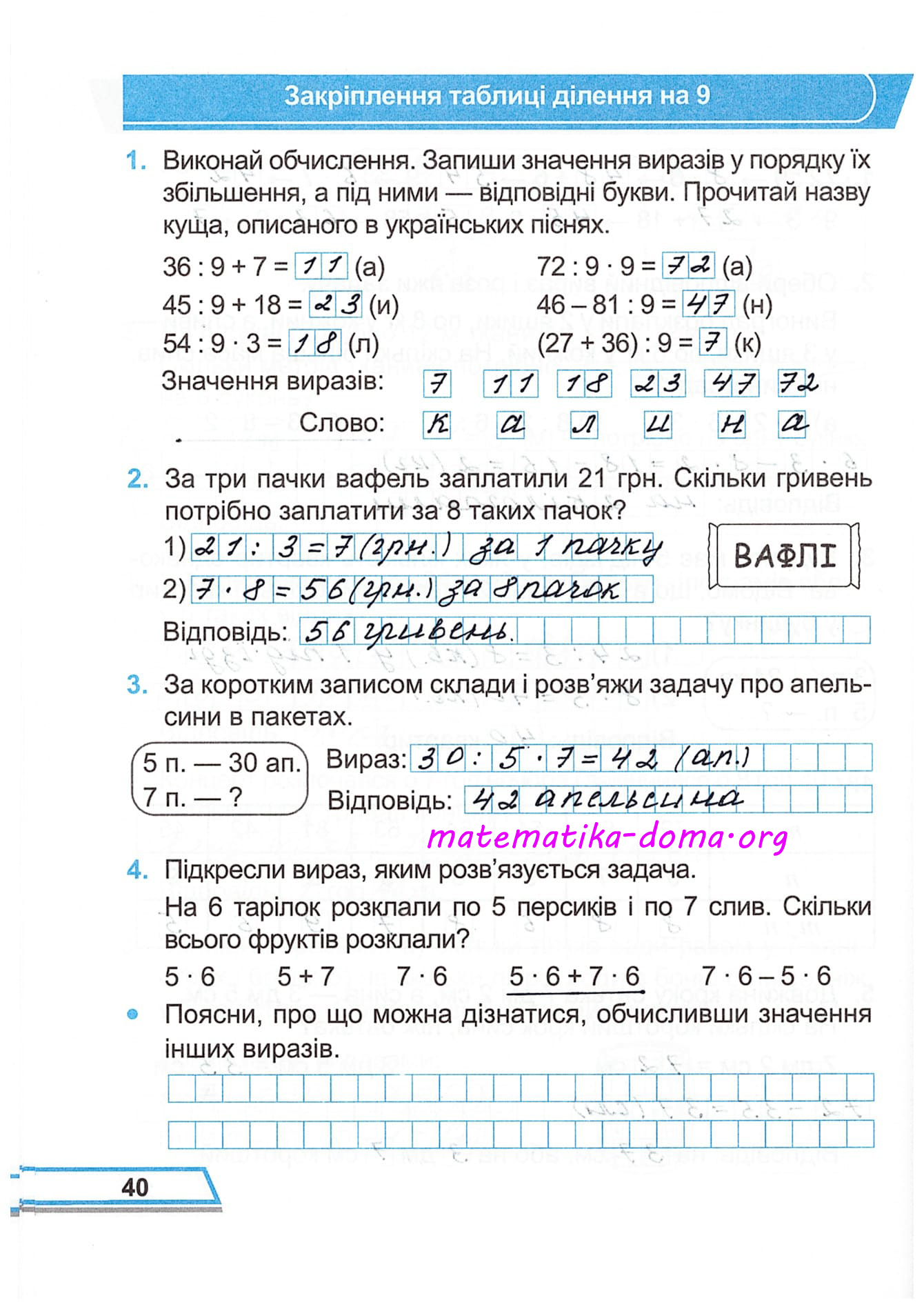 Сторінка 40 частина 1 гдз робочий зошит математика 3 клас Козак Корчевська