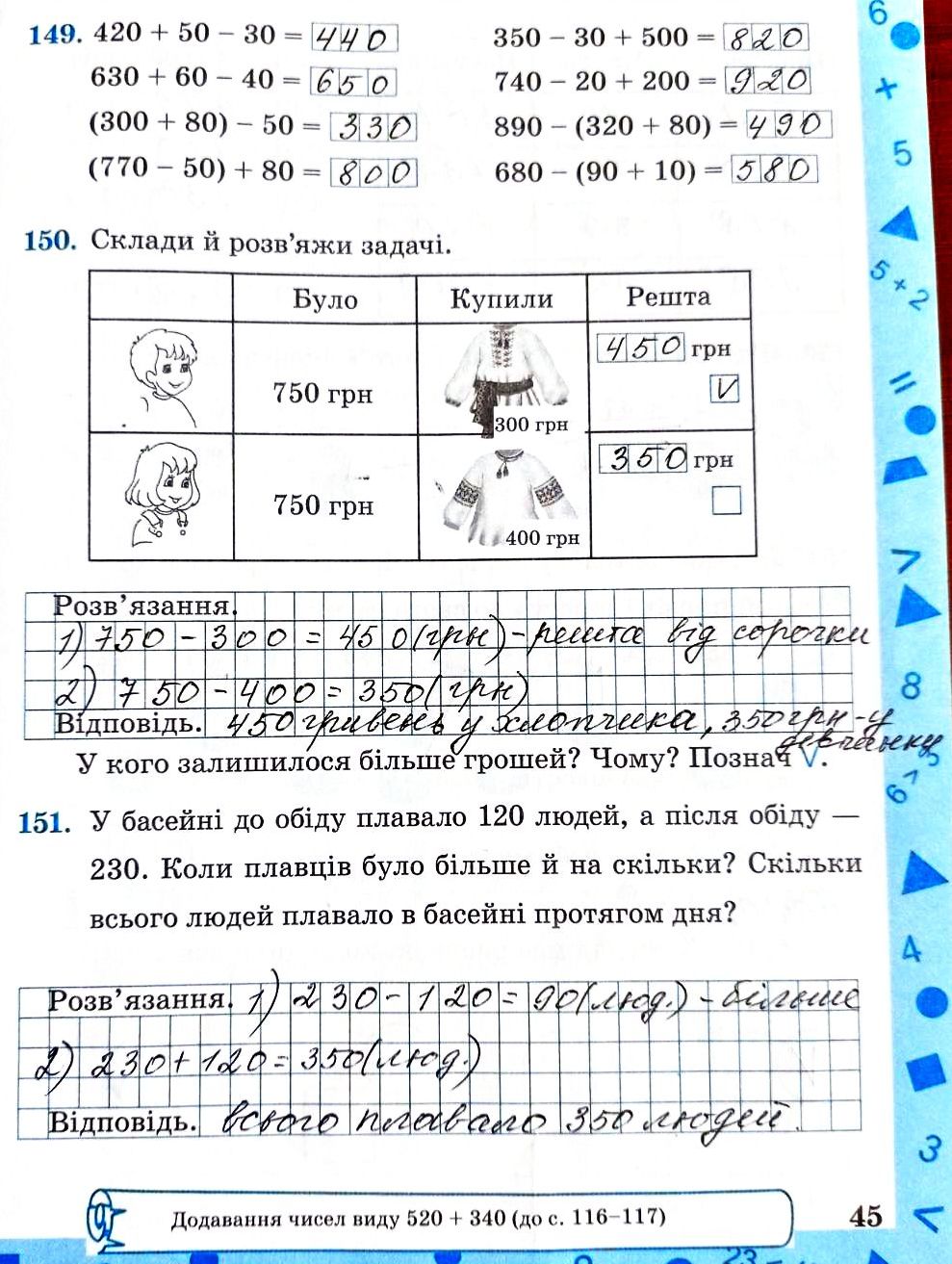 Сторінка 45 частина 1 гдз робочий зошит математика 3 клас Заїка Тарнавська 2020